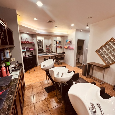 Inventory includes 6 Cutting chairs, 4 Color Stations, 3 Shampoo Stains, shelving for the retail area, reception desks, two computers, towels, coloring products, washer and dryer, and all telephones.